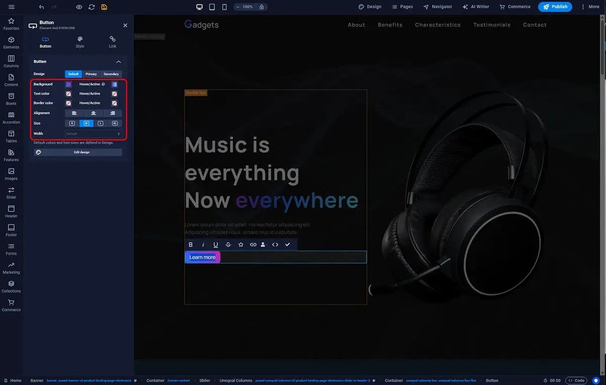 Sitejet Builder - button appearance